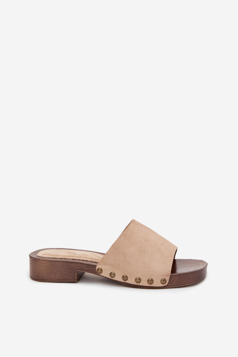 Damenhausschuhe mit breiten Absätzen Ze goldene Farbemi Stollen Beige Girella