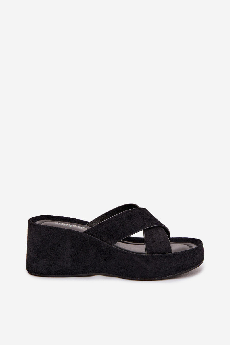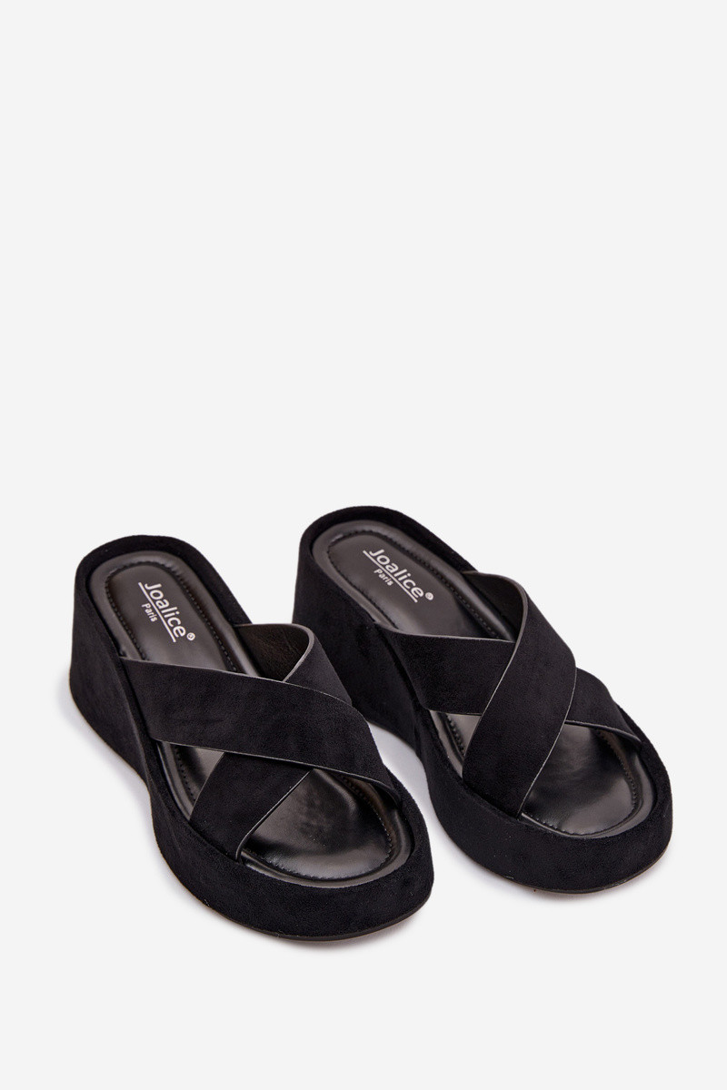 Schwarze Damen-Pantoletten auf Plateausohle aus Kunstwildleder „Calorine"
