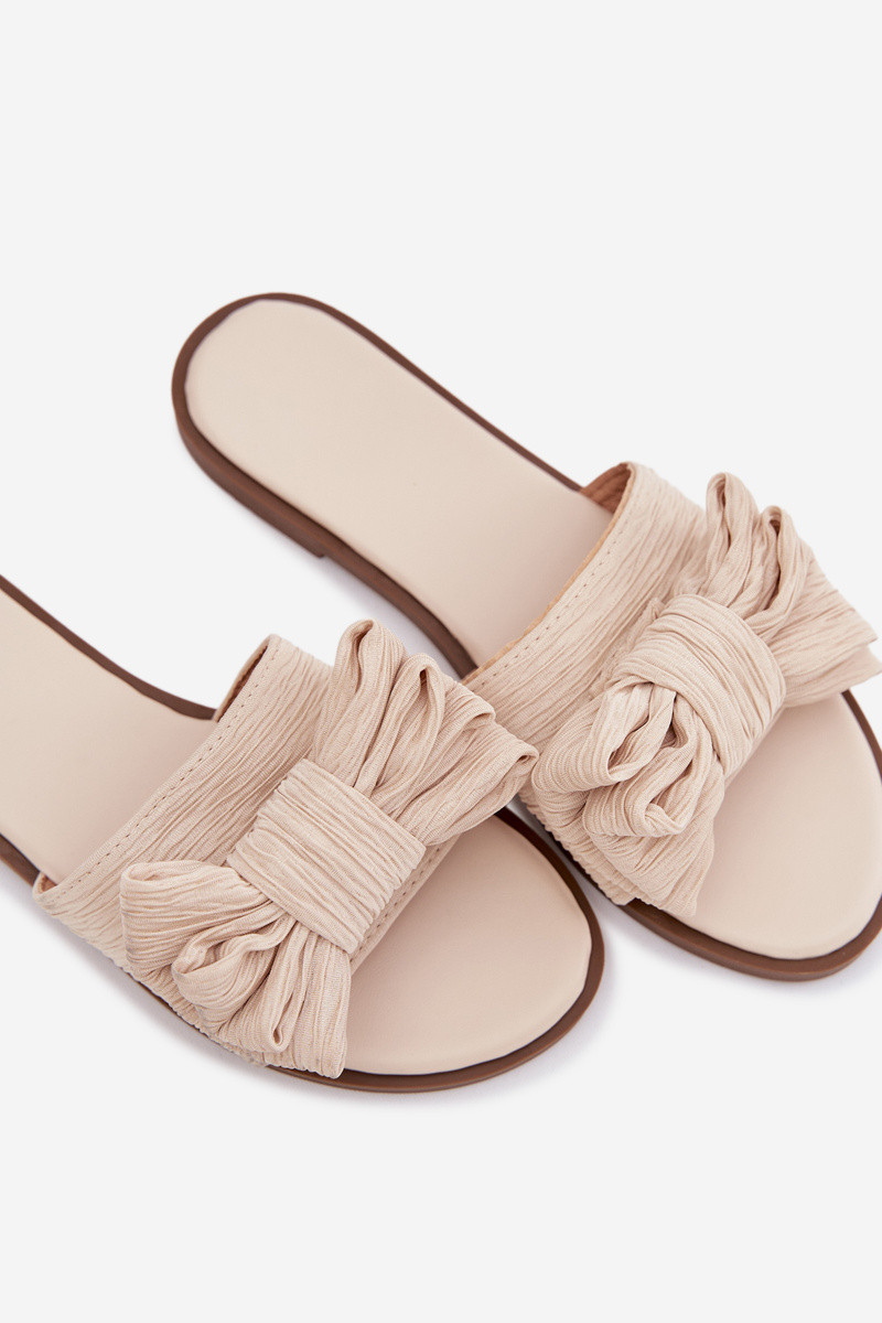 Damenpantoletten mit breiten Absätzen und Schleifen in Sandfarbe Amivelle