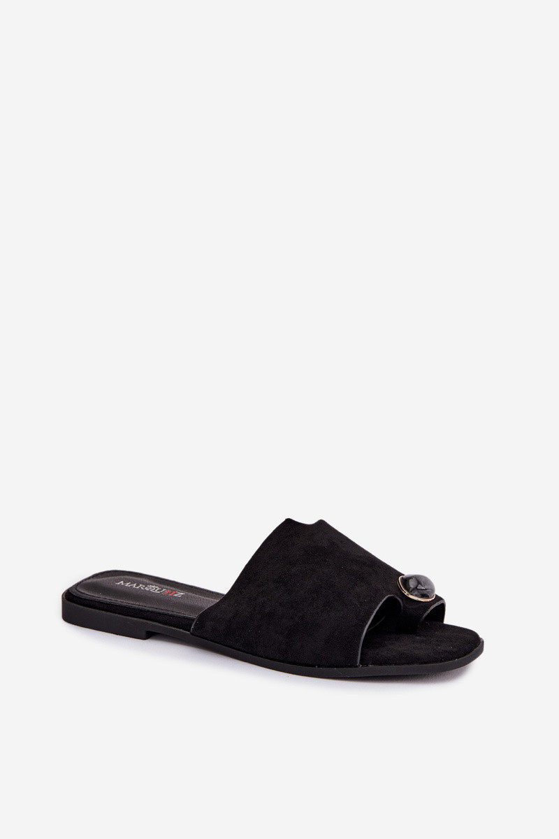 Damen flache Pantoletten mit dekorativen Details aus Kunstvelours, schwarz, Selavine