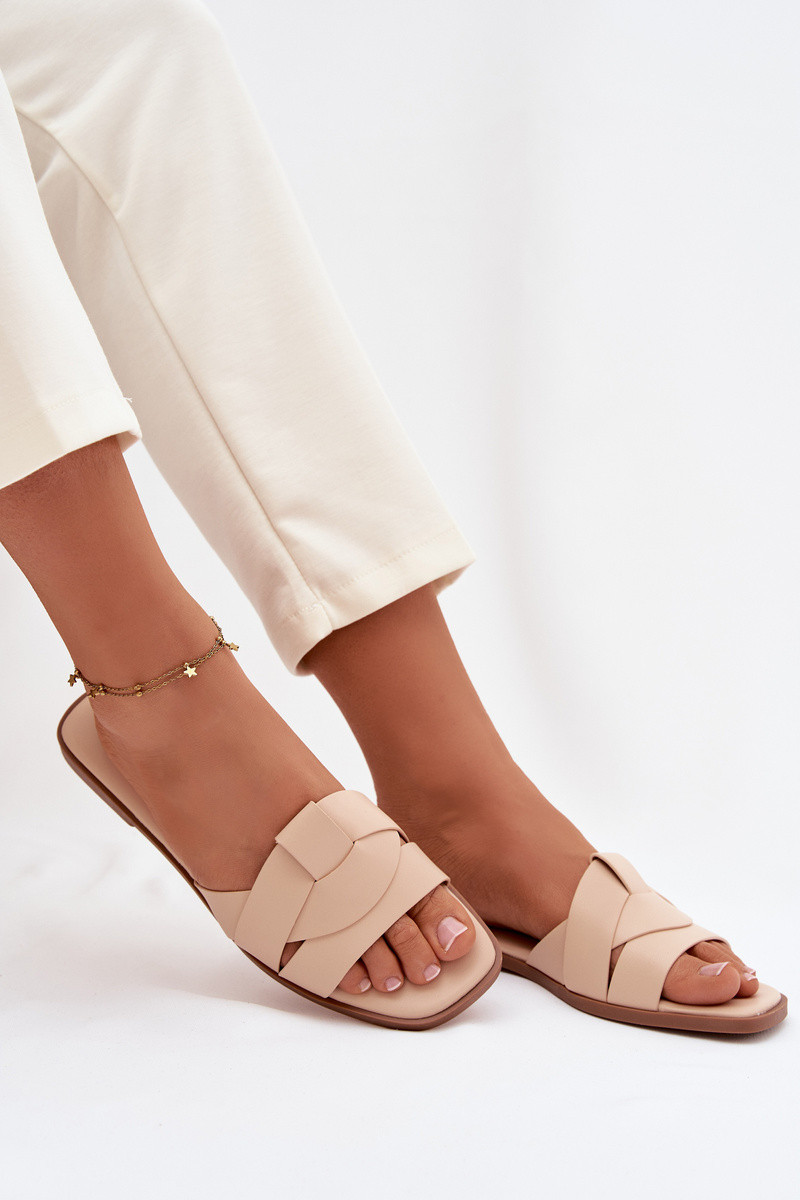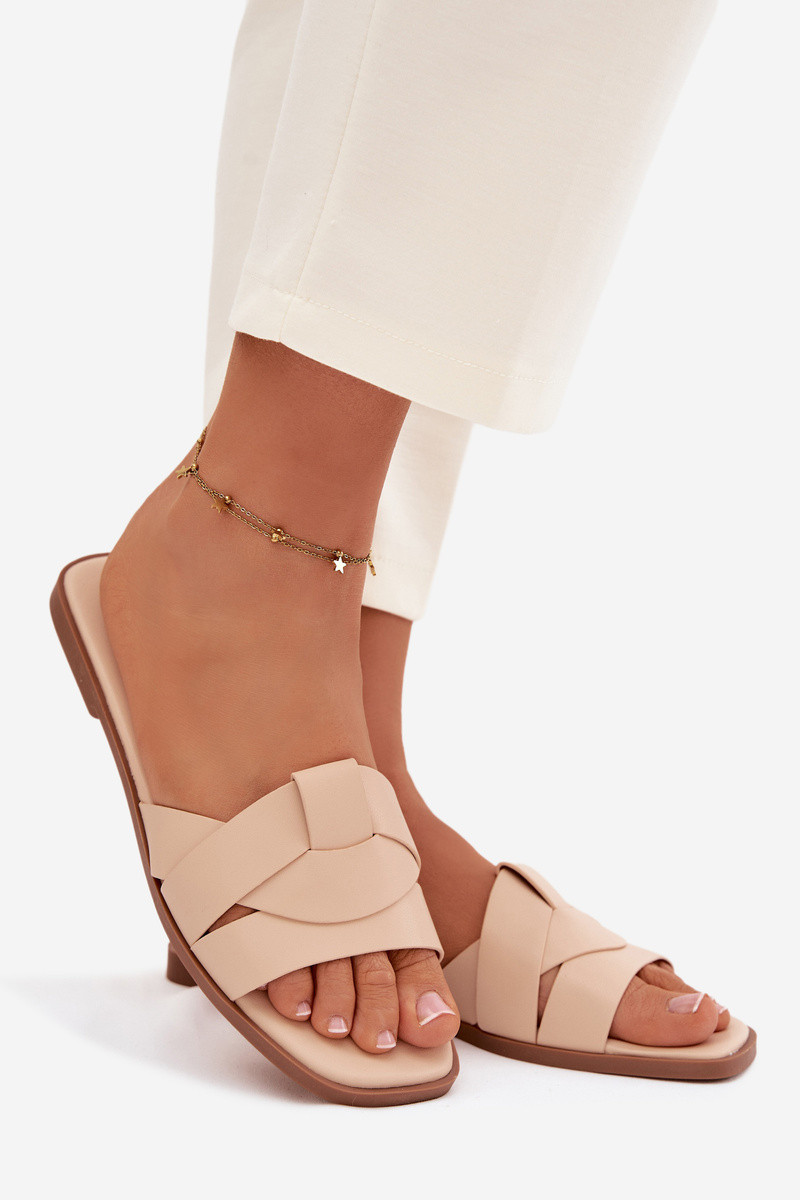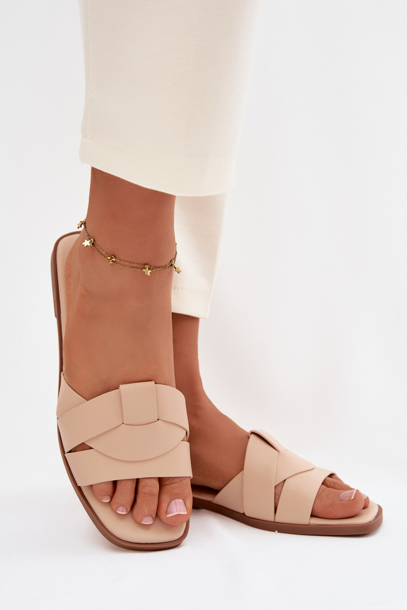 Damen sandfarbene flache Pantoletten mit Riemchen Tai turirissae