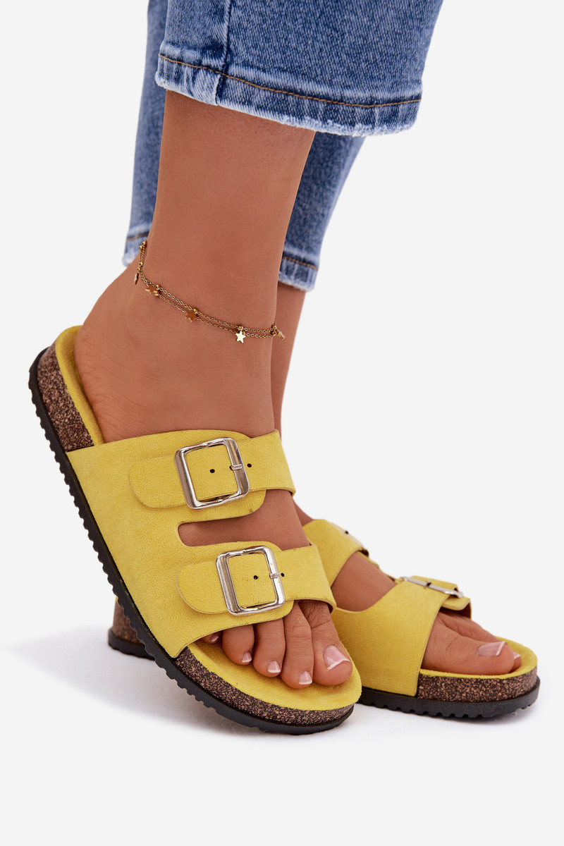 Damen gelbe Pantoletten mit Schnallen Oliena