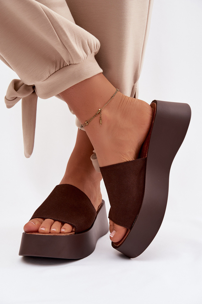Liorisse Damen Slipper mit Plateau in Schokoladenfarbe