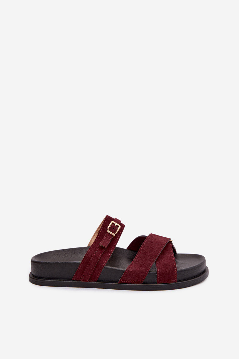 Damenhausschuhe mit Streifen I Złotą mit Schnallen Burgund Selorina