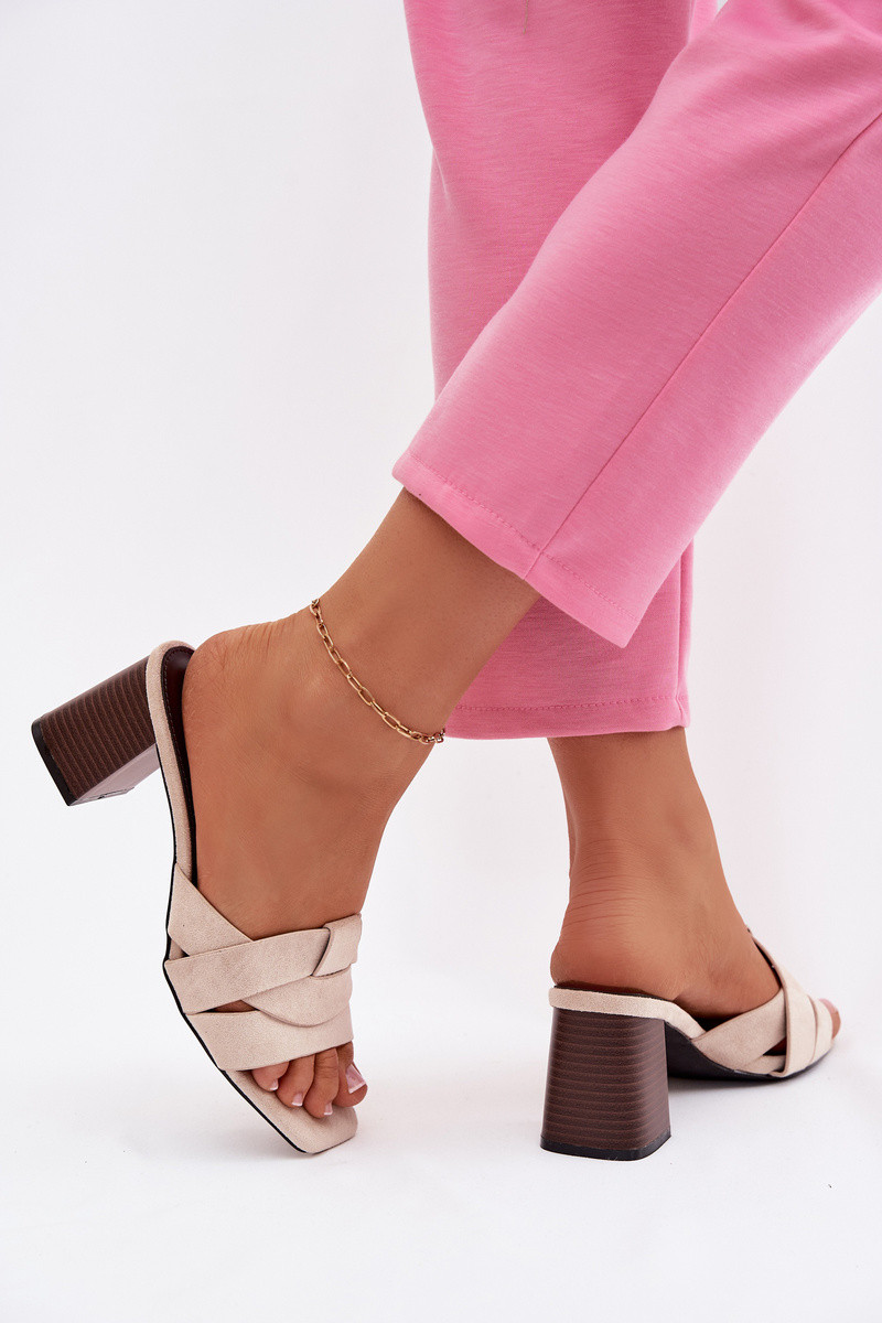 Damenpantoletten mit Absatz und Riemen aus Kunstvelours sandfarben Corivelle