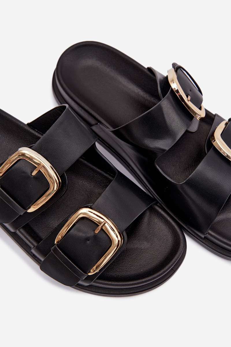 Damen Pantoffeln aus Kunstleder mit goldenen Schnallen in Schwarz „Tervessa"