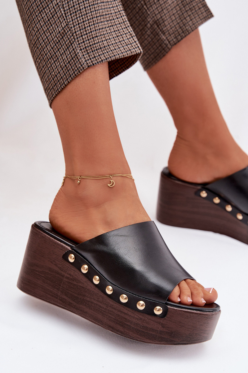 Damenhausschuhe Auf einem Keil und Plattform Ze goldene Farbemi Stollen schZuarze Farbe Farinelle