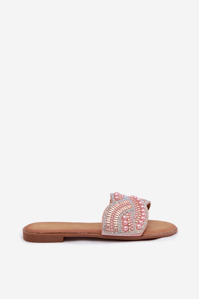Dekoriert Hausschuhe mit breiten Absätzen pinke Farbe Dovima