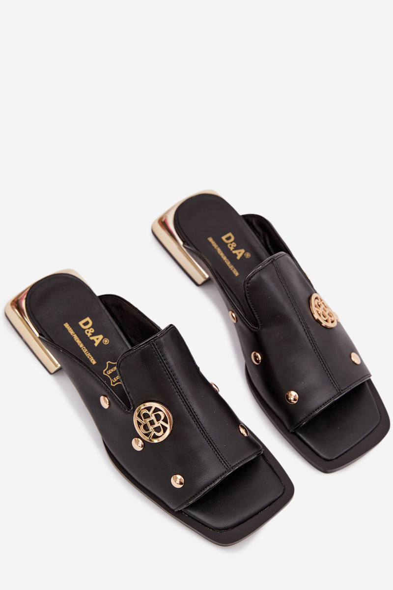 Lederhausschuhe Ze goldene Farbemi Ozdobami D&A CR61-3060 schZuarze Farbe