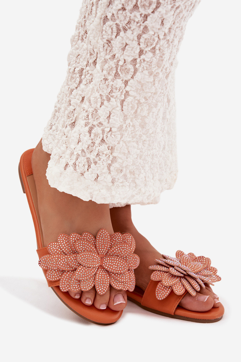 Orangenfarbene Damenpantoletten mit Dekoration Grelora