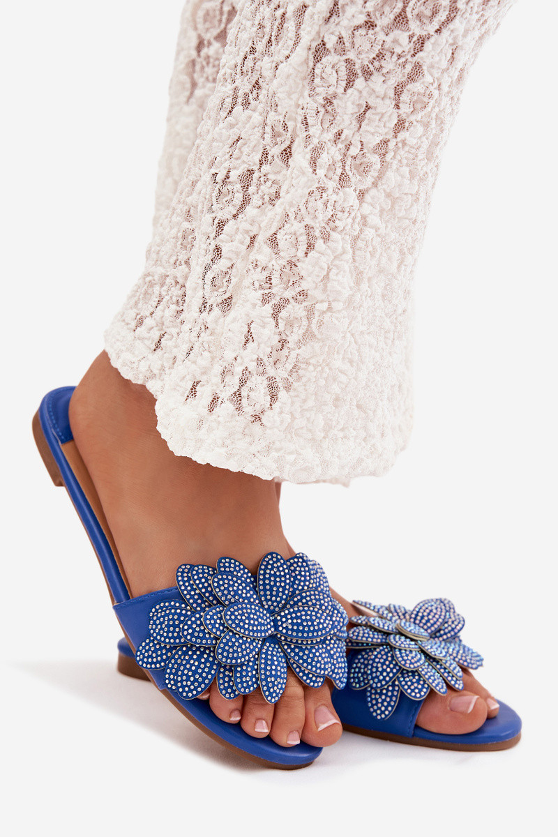 Dunkelblaue Damenpantoletten mit Dekoration Grelora