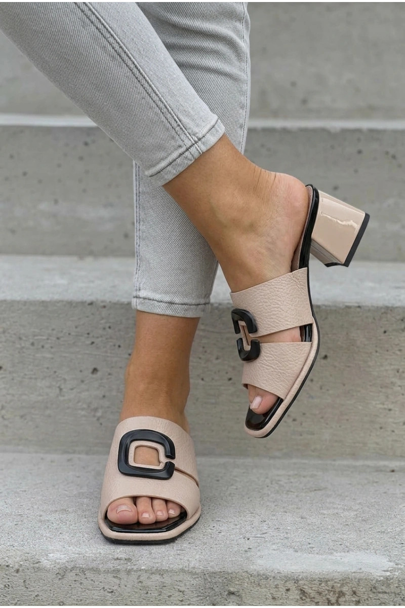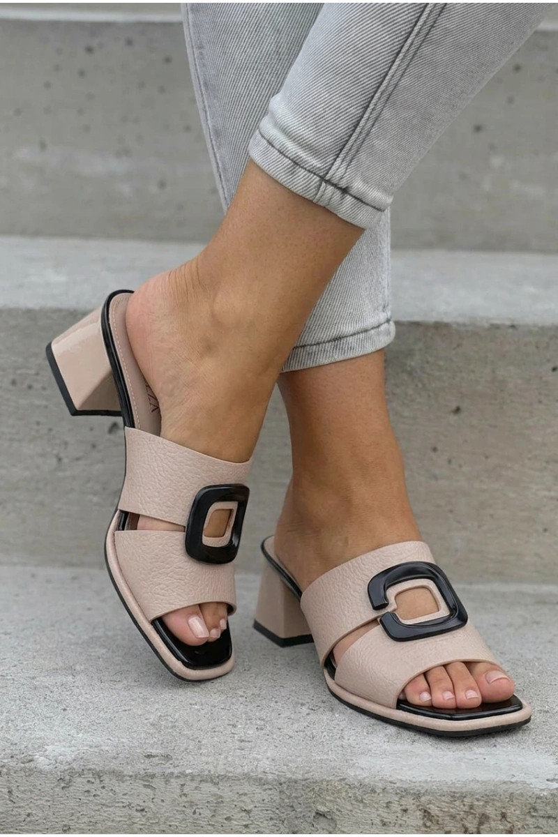 Damen Pantoletten mit Ausschnitten und Schnallen auf Absatz Vinceza 62284 sandfarben