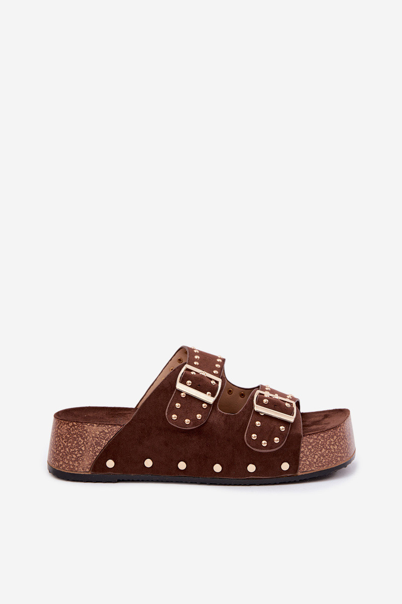 Ledira schokoladenfarbene Pantoletten für Damen mit Schnallen und Nieten