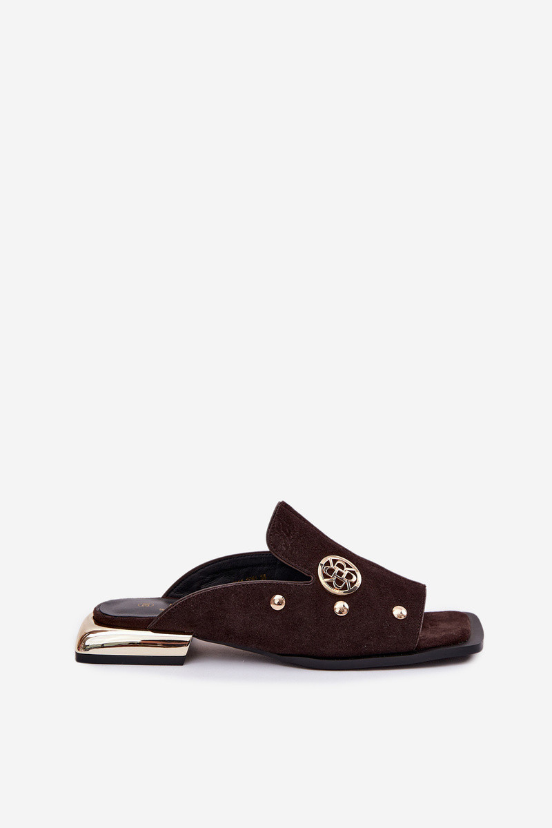 Wildleder-Pantoletten mit goldenen Verzierungen D&A CR61-3061 schokoladenfarben