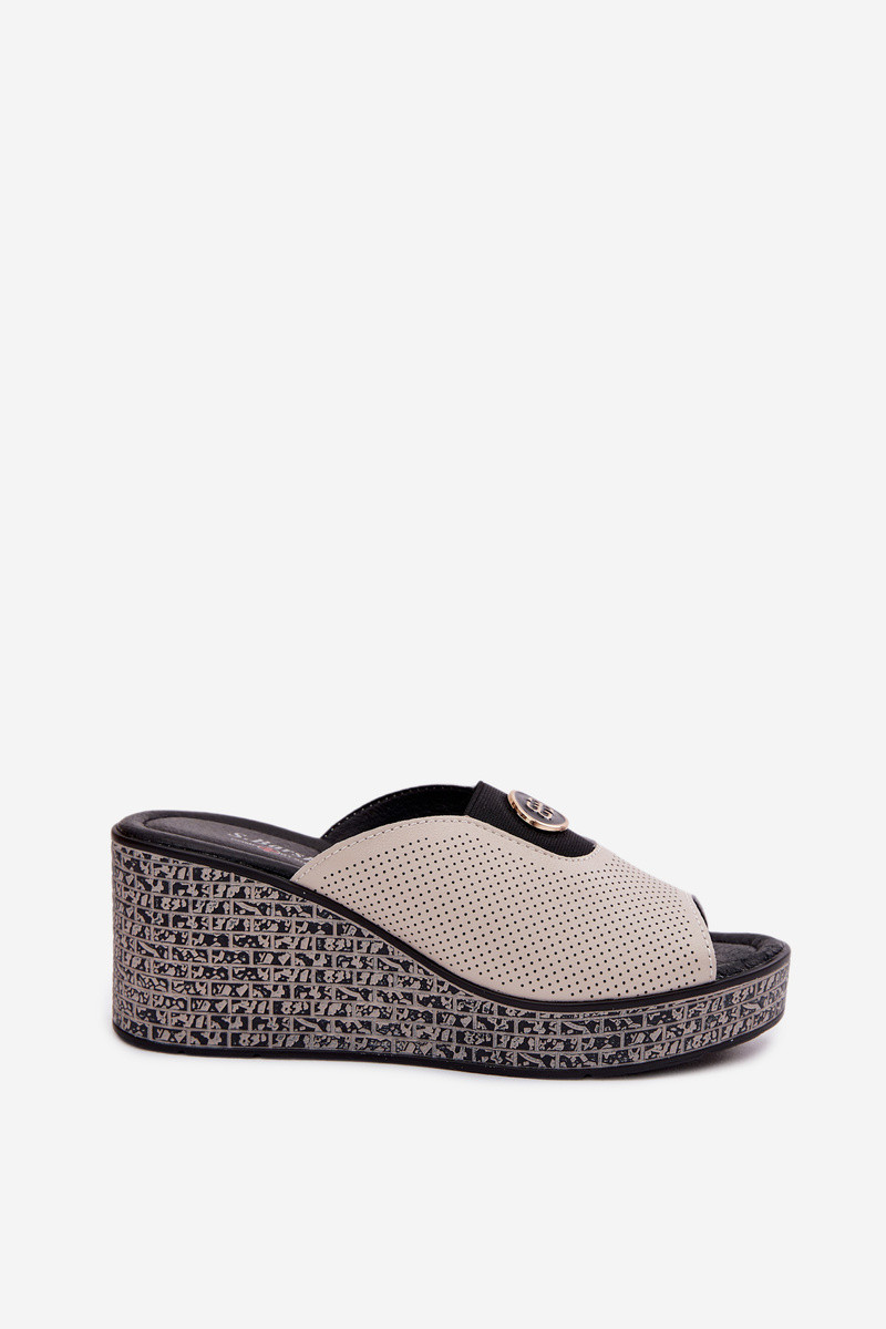 Lederpantoletten mit Plattform und Ornamenten S.Barski LR61-7011 sandfarben