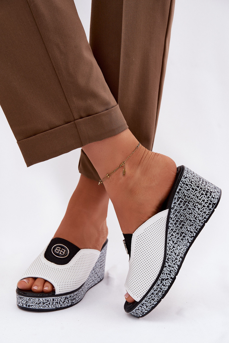 Lederpantoletten mit Plattform und Ornamenten S.Barski LR61-7011 weiß