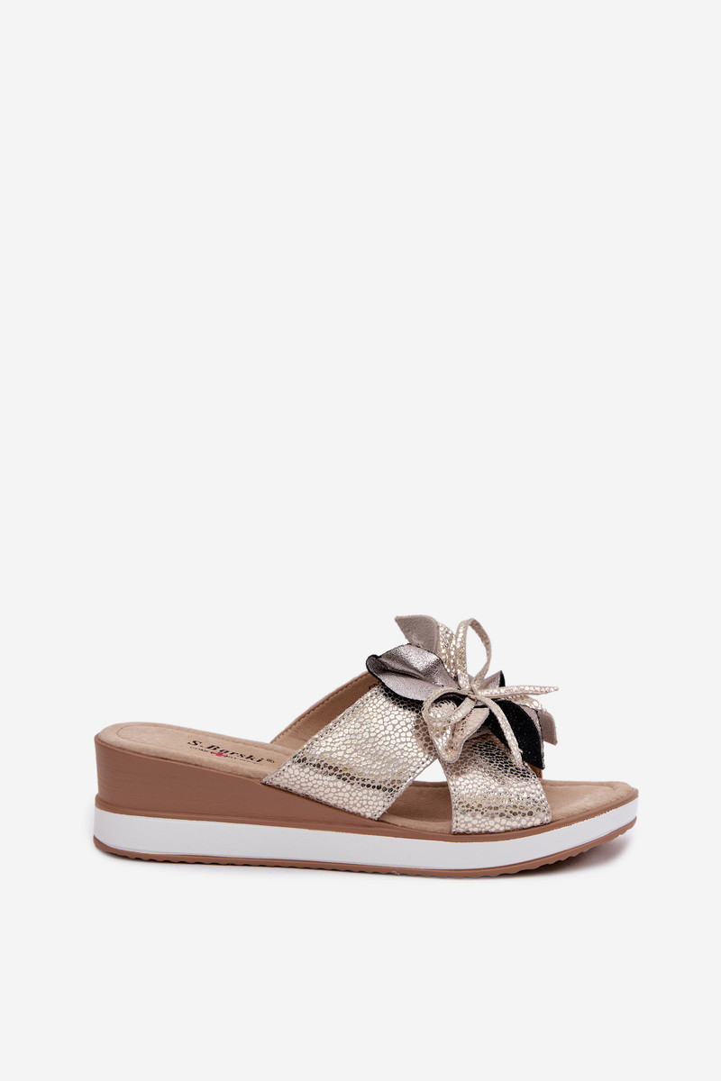 Lederpantoletten mit Plattform und dekorativer Blume S.Barski GR61-5989 goldfarben