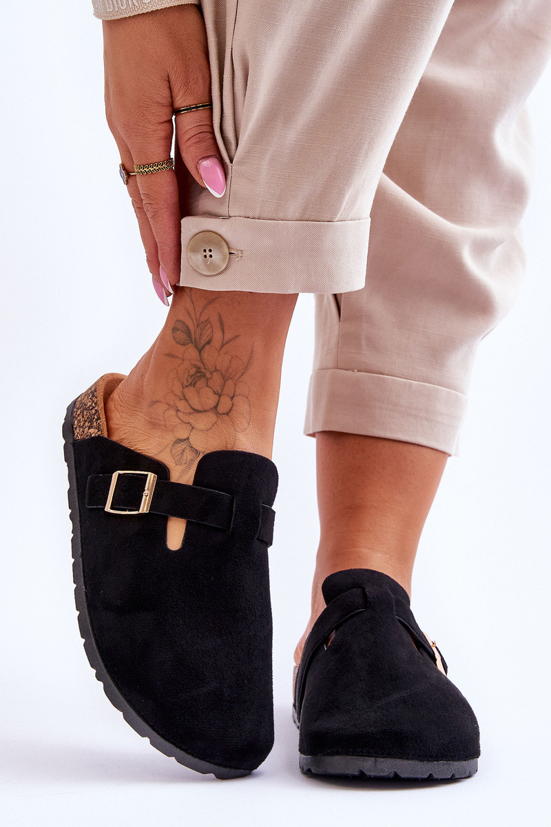 INildlederpantoffeln auf einer Korkplattform schZuarze Farbe Vellma