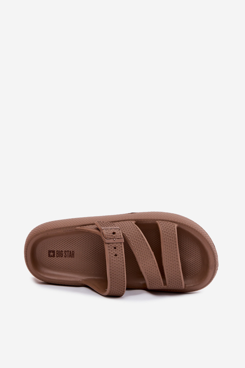 Leichte Hausschuhe Damenhausschuhe mit Streifen I mit Schnallen Big Star TT274A041 braune Farbe