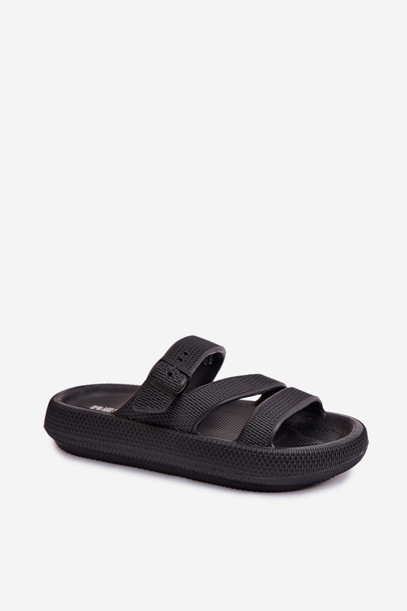 Leichte Hausschuhe Damenhausschuhe mit Streifen I mit Schnallen Big Star TT274A037 schZuarze Farbe
