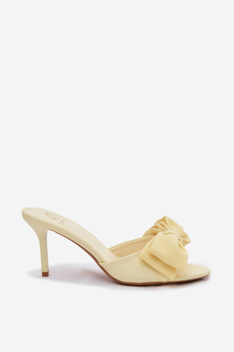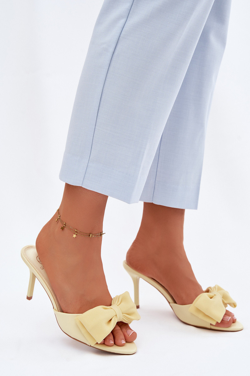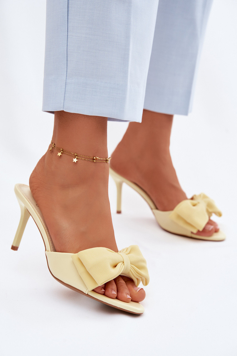 Damen Pantoletten mit feinen Absätzen und Schleifen gelb Jelessa