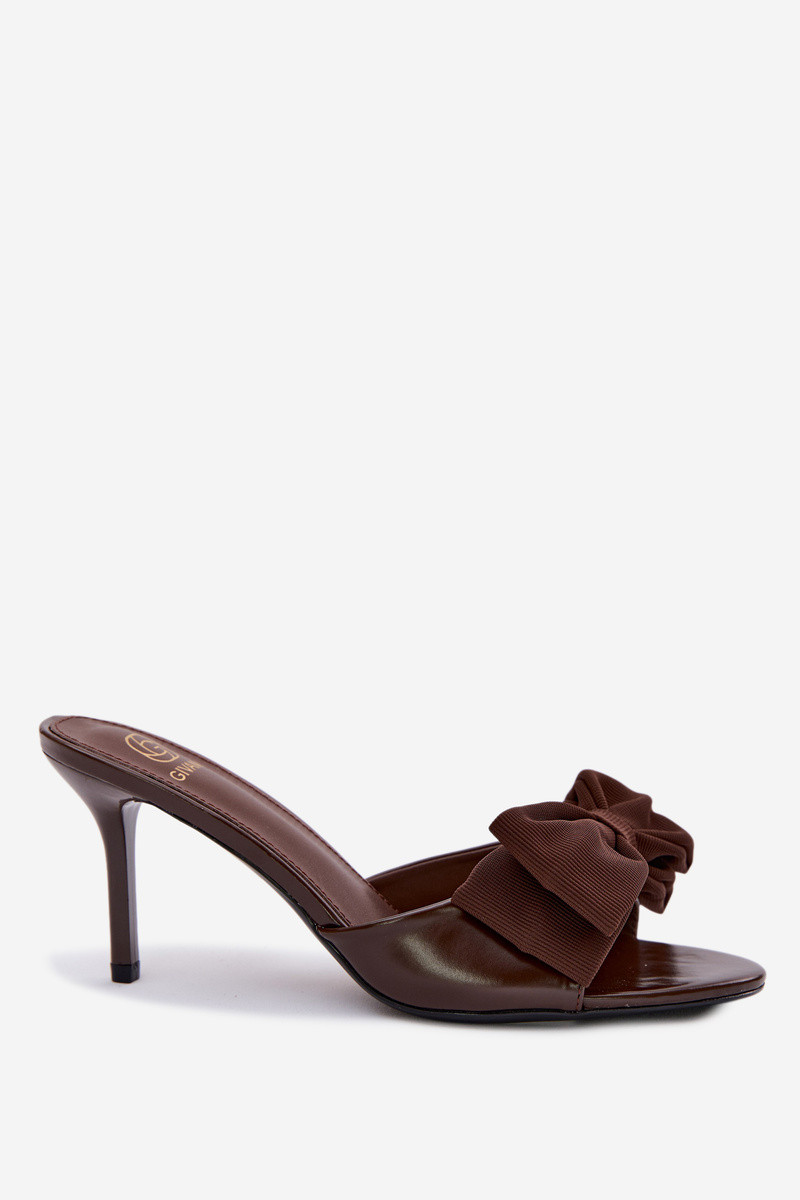 Damen Pantoletten mit feinen Absätzen und Schleifen schokoladenfarben Jelessa