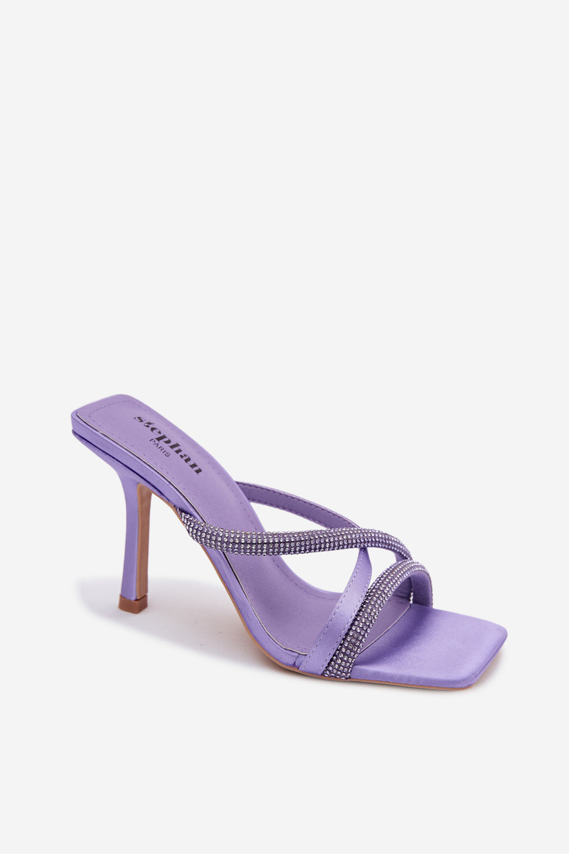 Damenhausschuhe mit dünnen Absätzen Streifen mit blitzenden Augen Violette Farbe Karima