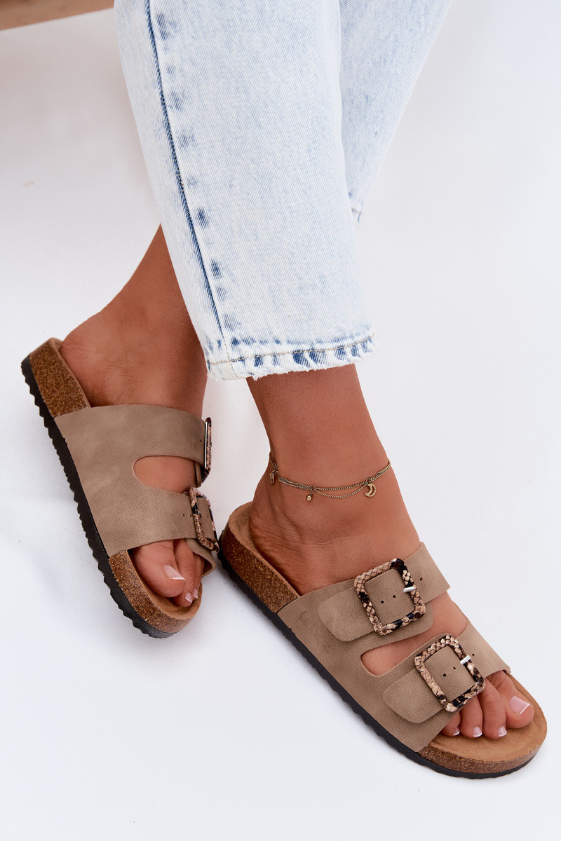 Damenhausschuhe mit Schnallen Lee Cooper LCIN-26-35-4451L Khaki-Farbe