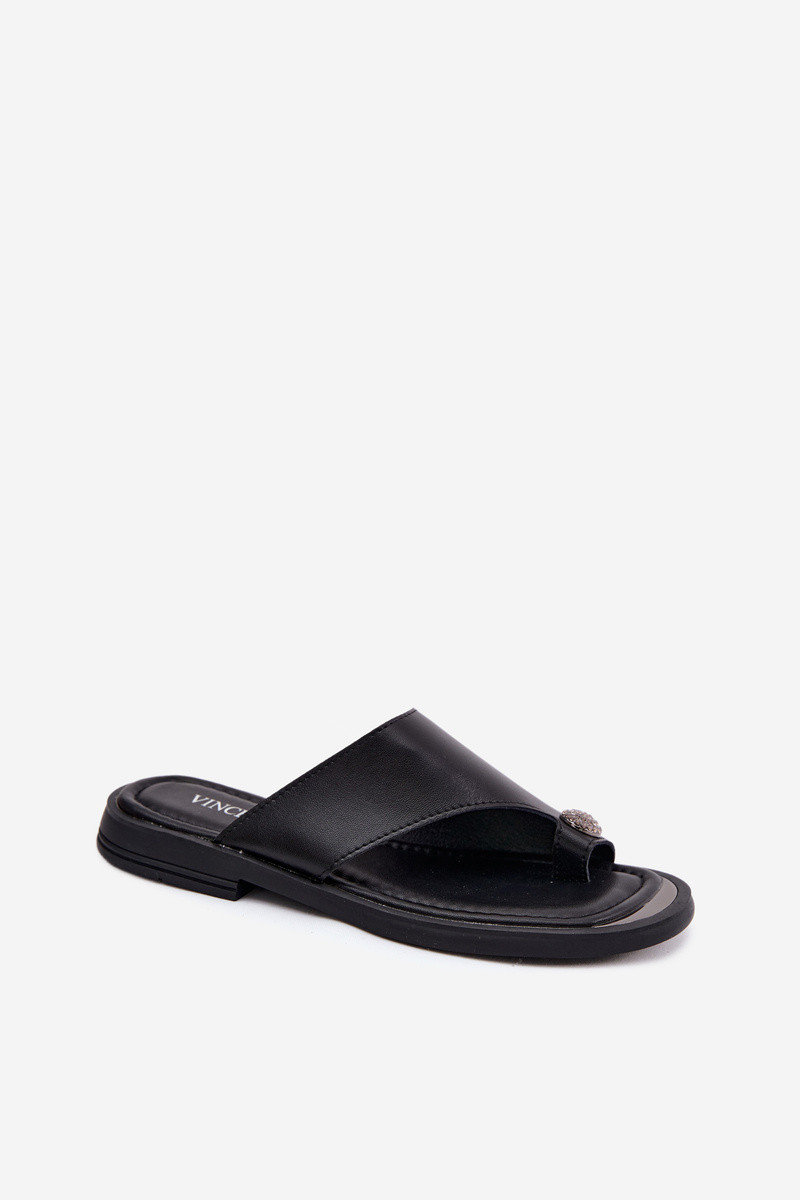 Lederhausschuhe Hausschuhe Feminin mit breiten Absätzen Vinceza 62307 schZuarze Farbe