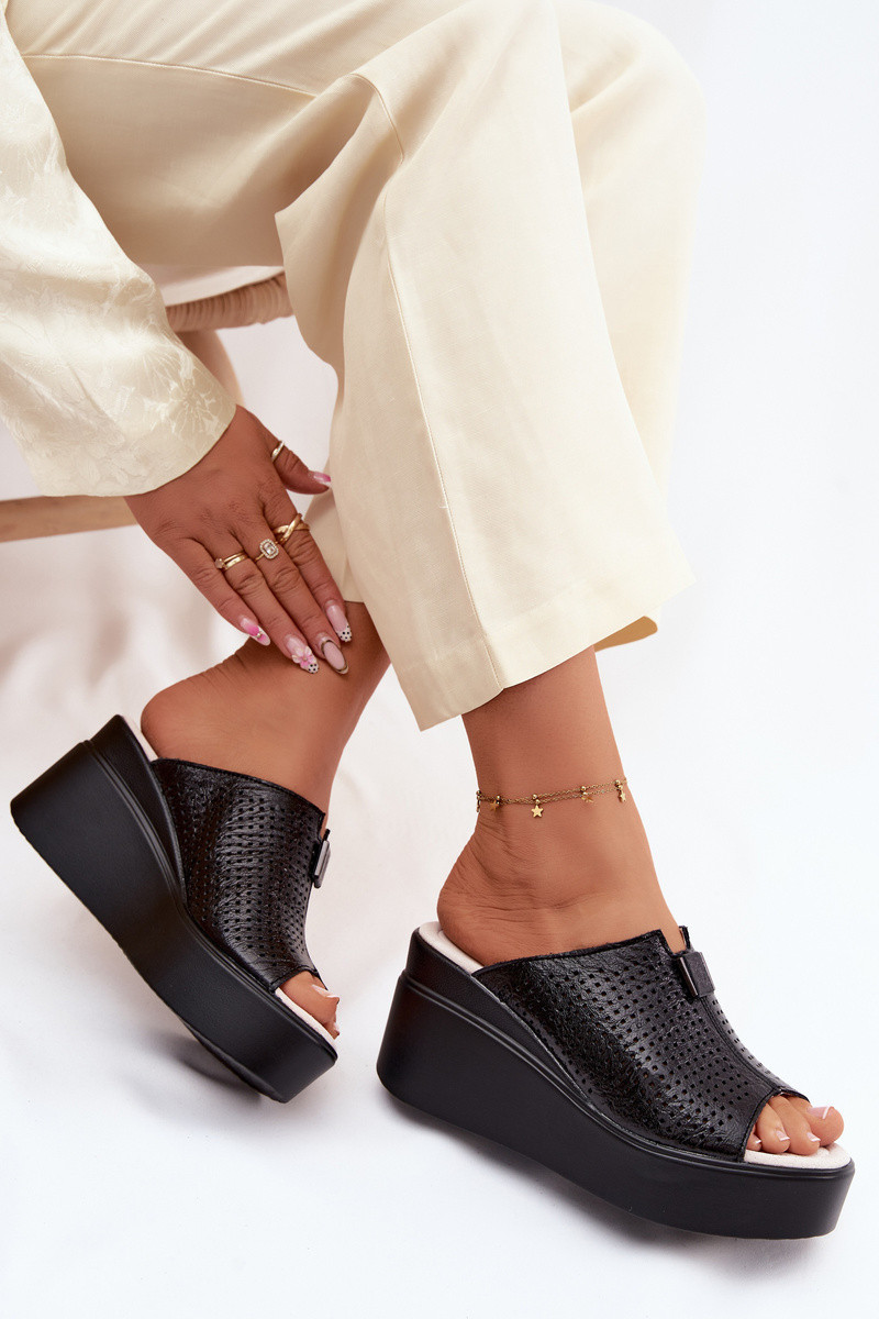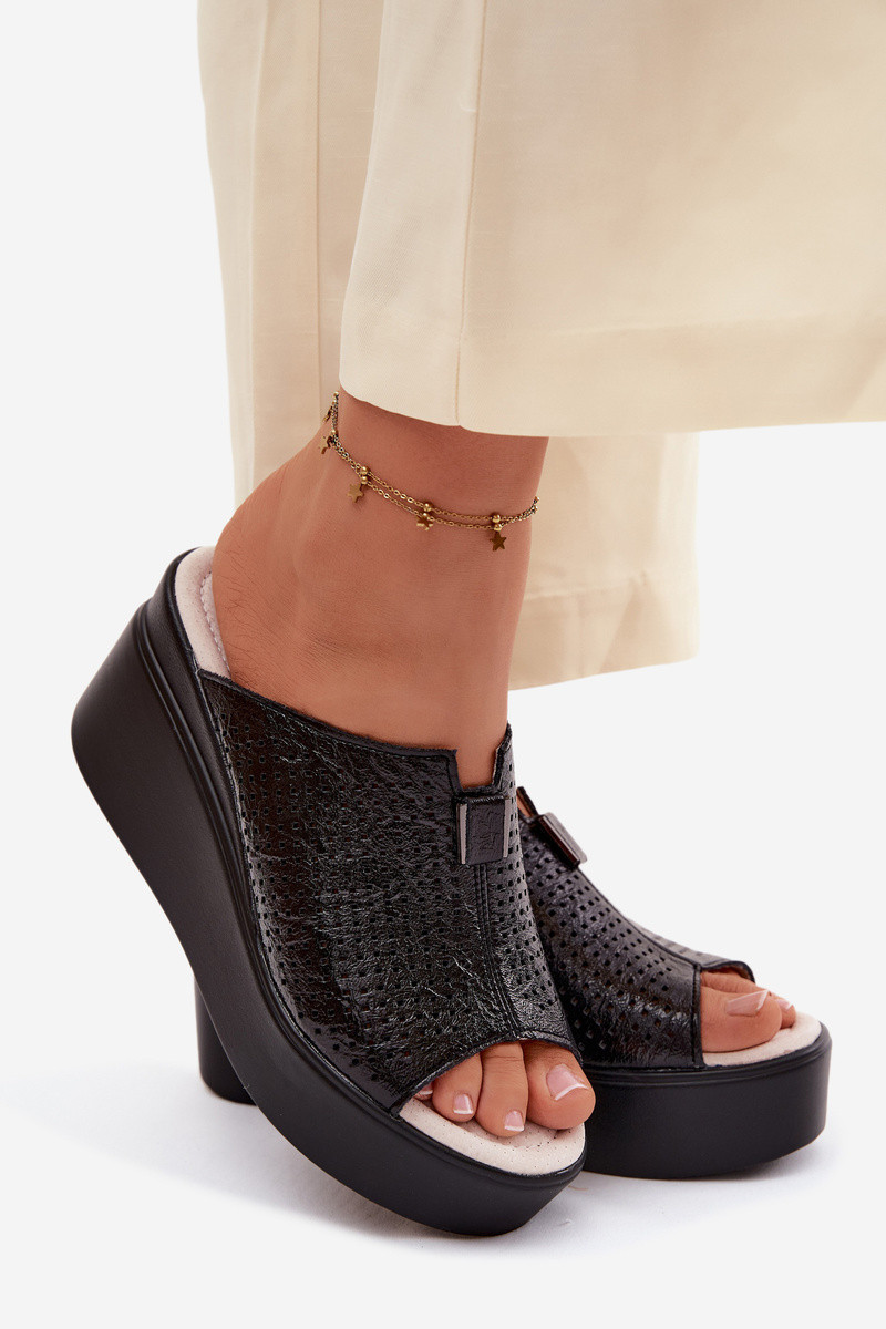 DamenhausschuheErmöglichtturalnej Skóry mit einer Plattform Vinceza 95392 schZuarze Farbe