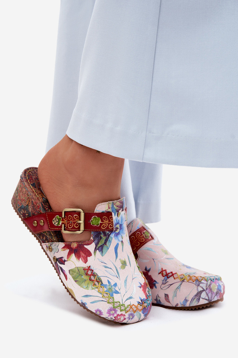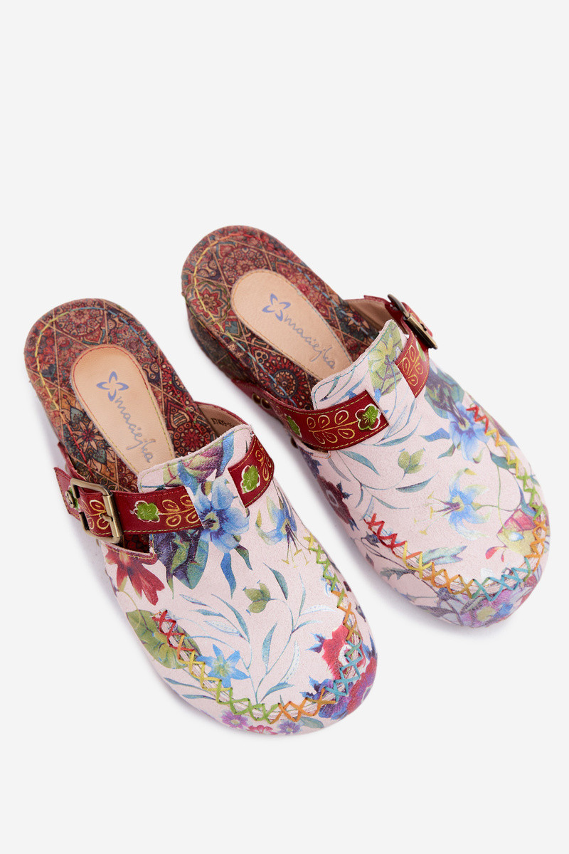 Lederhausschuhe Mule Feminin mit einer Plattform mit Blumen Es mussciejka K7409-15 Verschiedene Farben