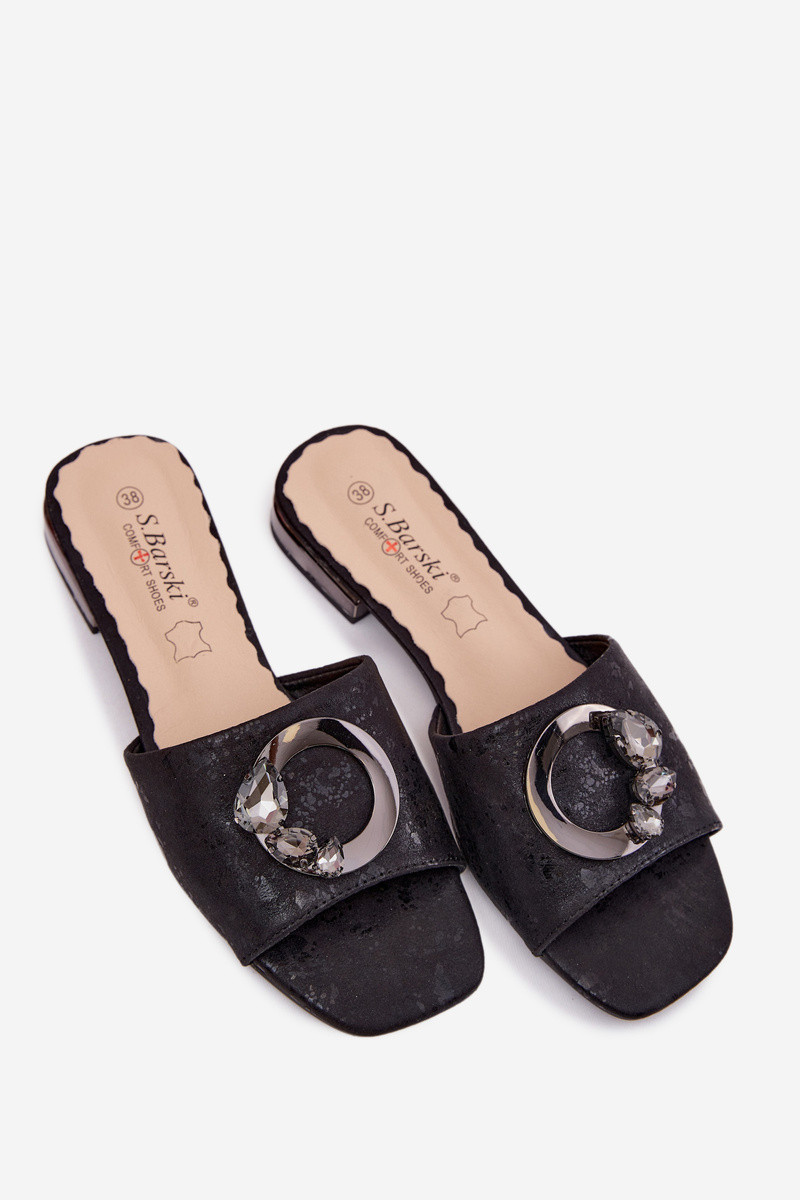 Damen-Pantoletten mit breiten Absätzen und Ornamenten KV61-6025 schwarz