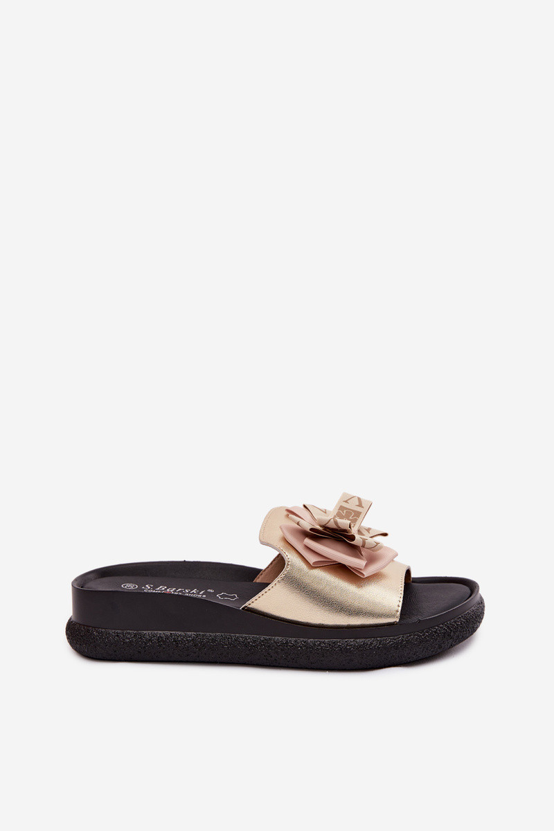 Damen-Pantoletten aus natürlichem Leder mit Schleifen S.Barski KV61-6061 goldfarben