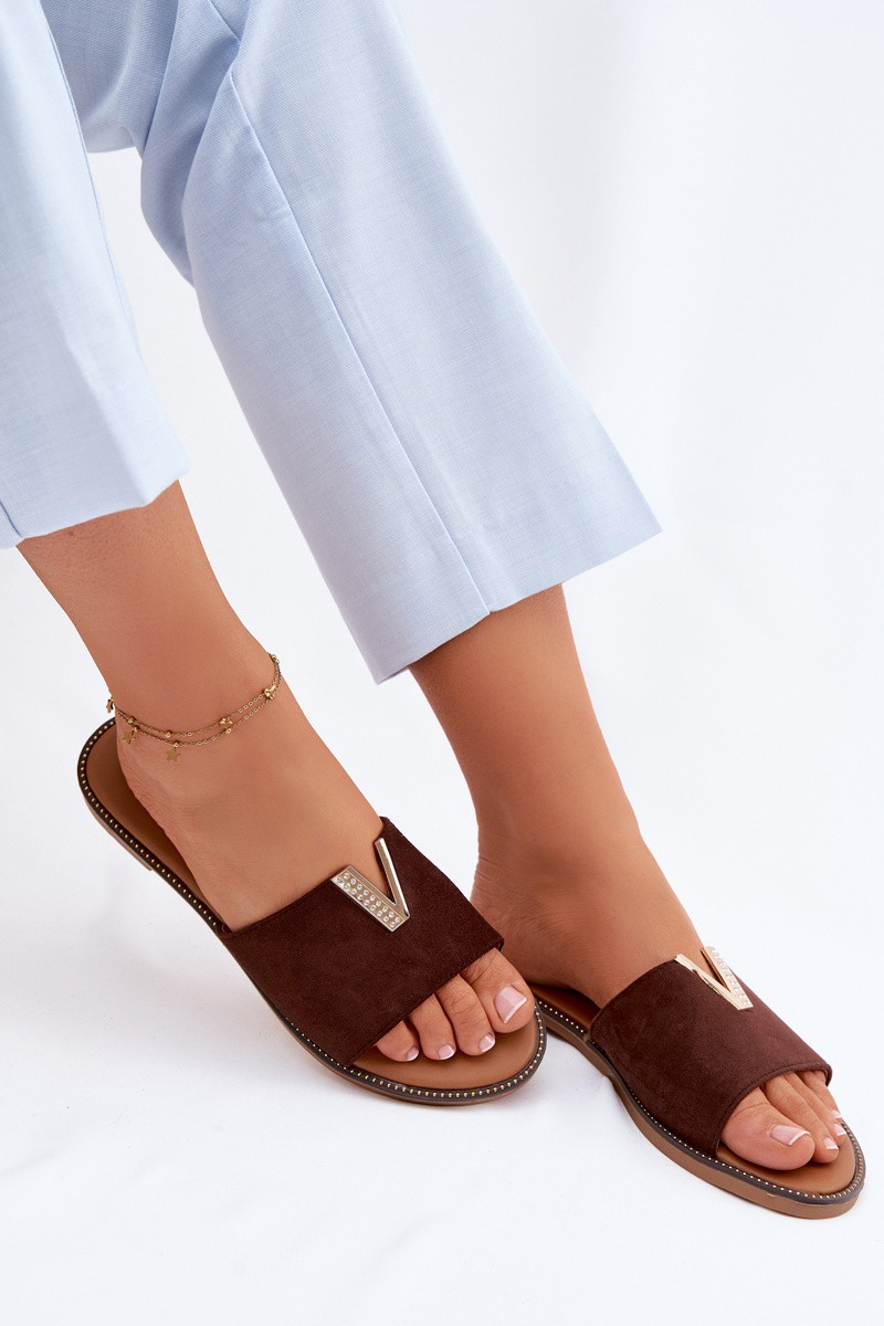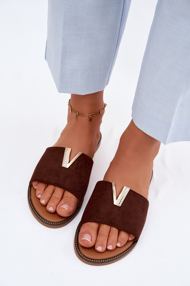 Damen Hausschuhe mit dekorativen Details in Schokoladenfarbe Nelmira
