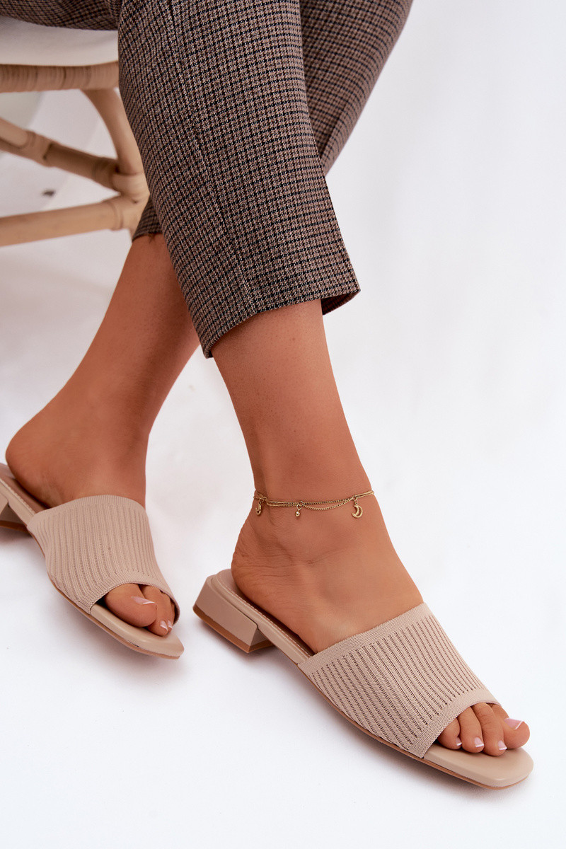 Damenhausschuhe mit breiten Absätzen elfenbeinfarbe Belissea