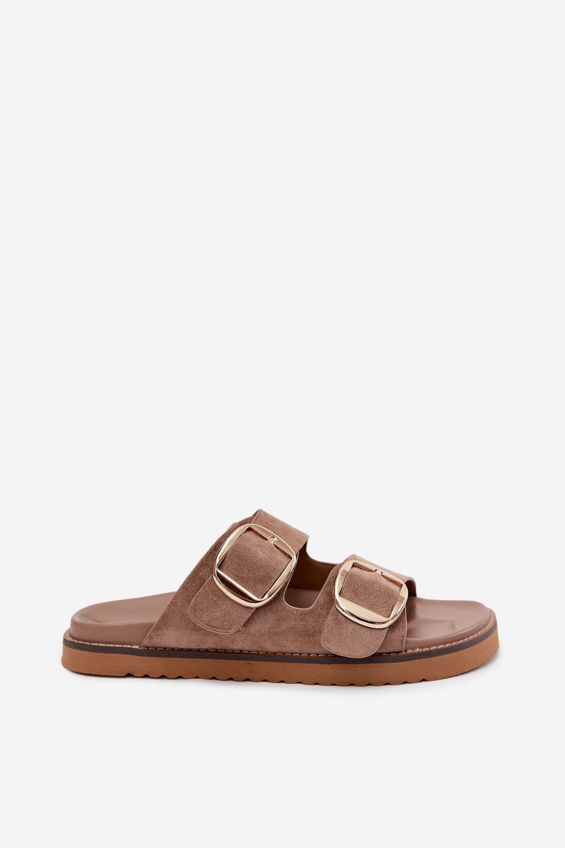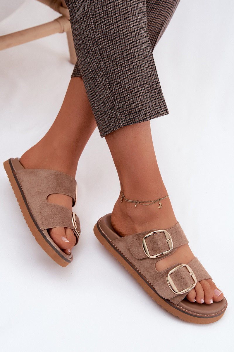 DamenhausschuheImitacji aus INildlederu goldene Farbe mit Schnallen braune Farbe Averia
