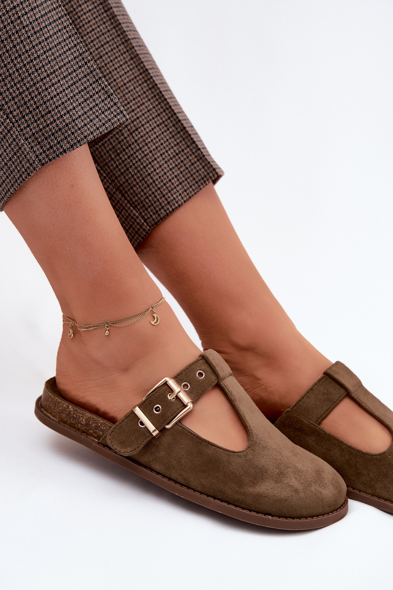 Damenhausschuhe MuleImitacji aus INildlederu Khaki-Farbe-Farbe Melvia