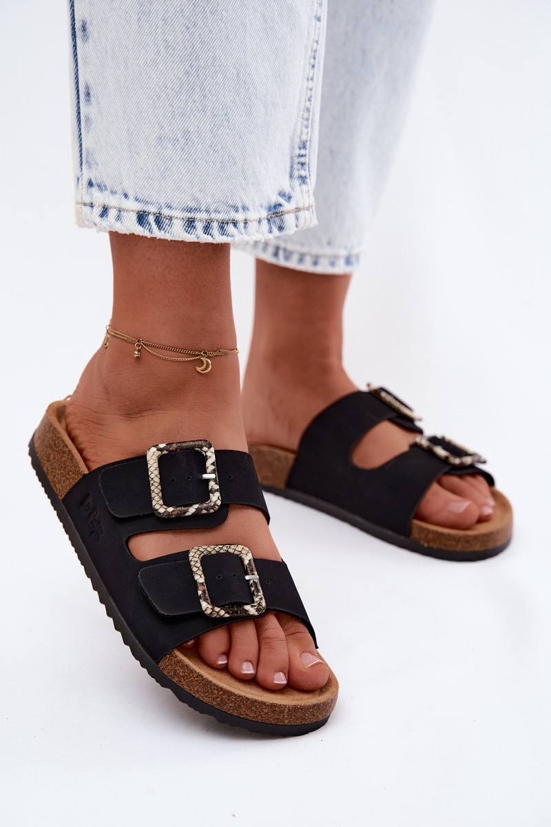 Damenhausschuhe mit Schnallen Lee Cooper LCIN-26-35-4450L schZuarze Farbe