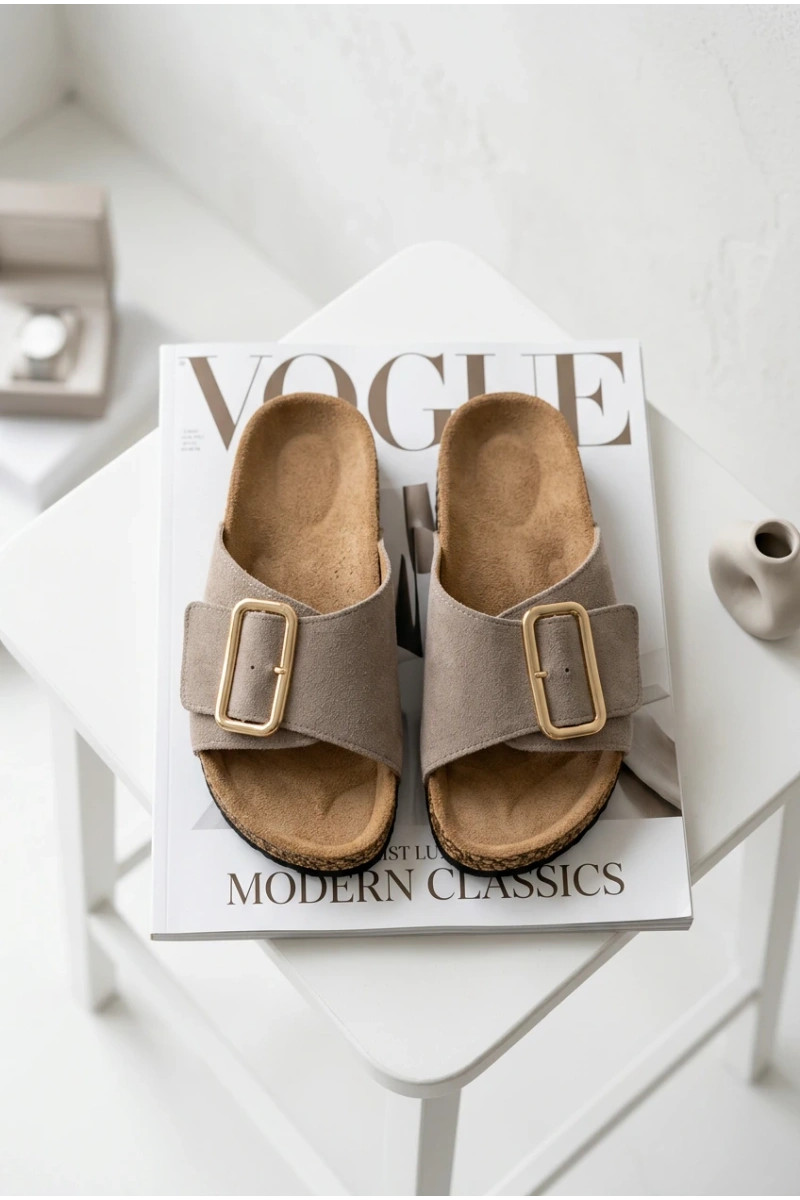 Haut INildleder-Hausschuhe für Damen mit Schnallen Beige Beryl