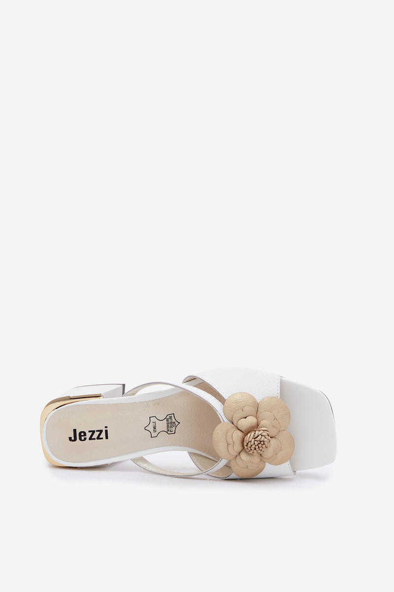 Leder-Pantoletten mit Blume und Absatz in Weiß Catva