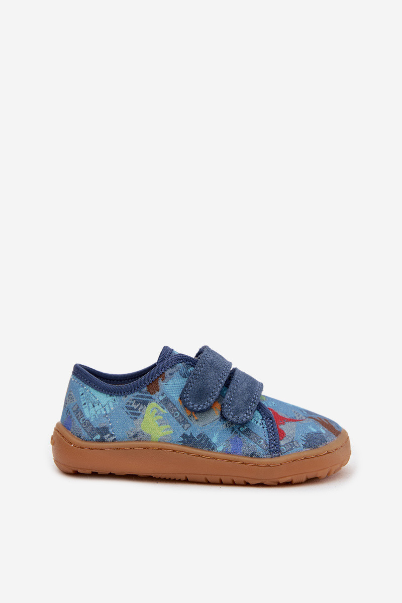 Kinder-Barefoot-Slipper mit Dinosauriern Froddo Canvas G1700440-15 in Blau