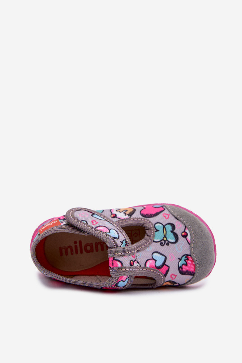 Milami Slipper für Kinder mit Klettverschluss in grau Jasimrra