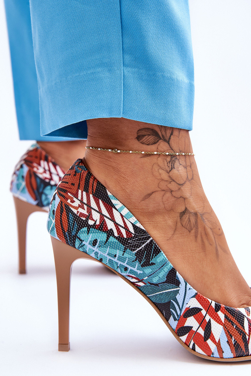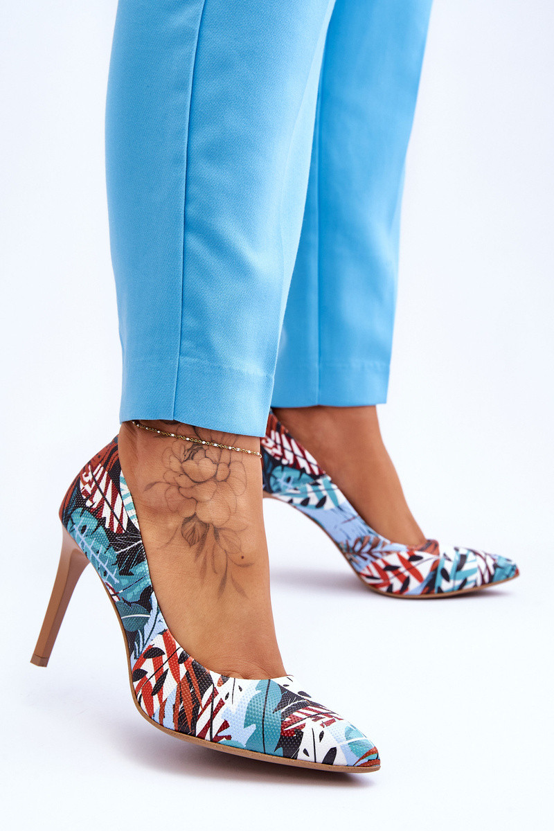 Modisch Haut hochhackige Schuhe LeZuski Shoes 2659 Grün-blaue Farbe