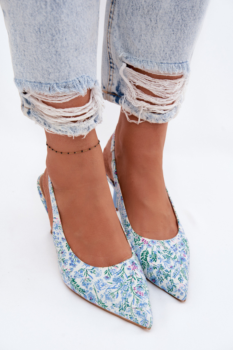 Dekoriert Damensandalen mit dünnen Absätzen mit Blumen blaue Farbe Olivelle