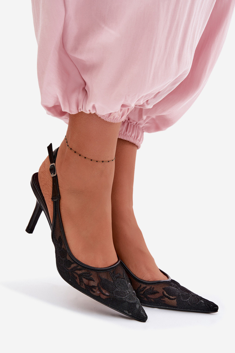 mit Spitzenmotiven Netz Sandalen mit dünnen Absätzen schZuarze Farbe Es mussvia