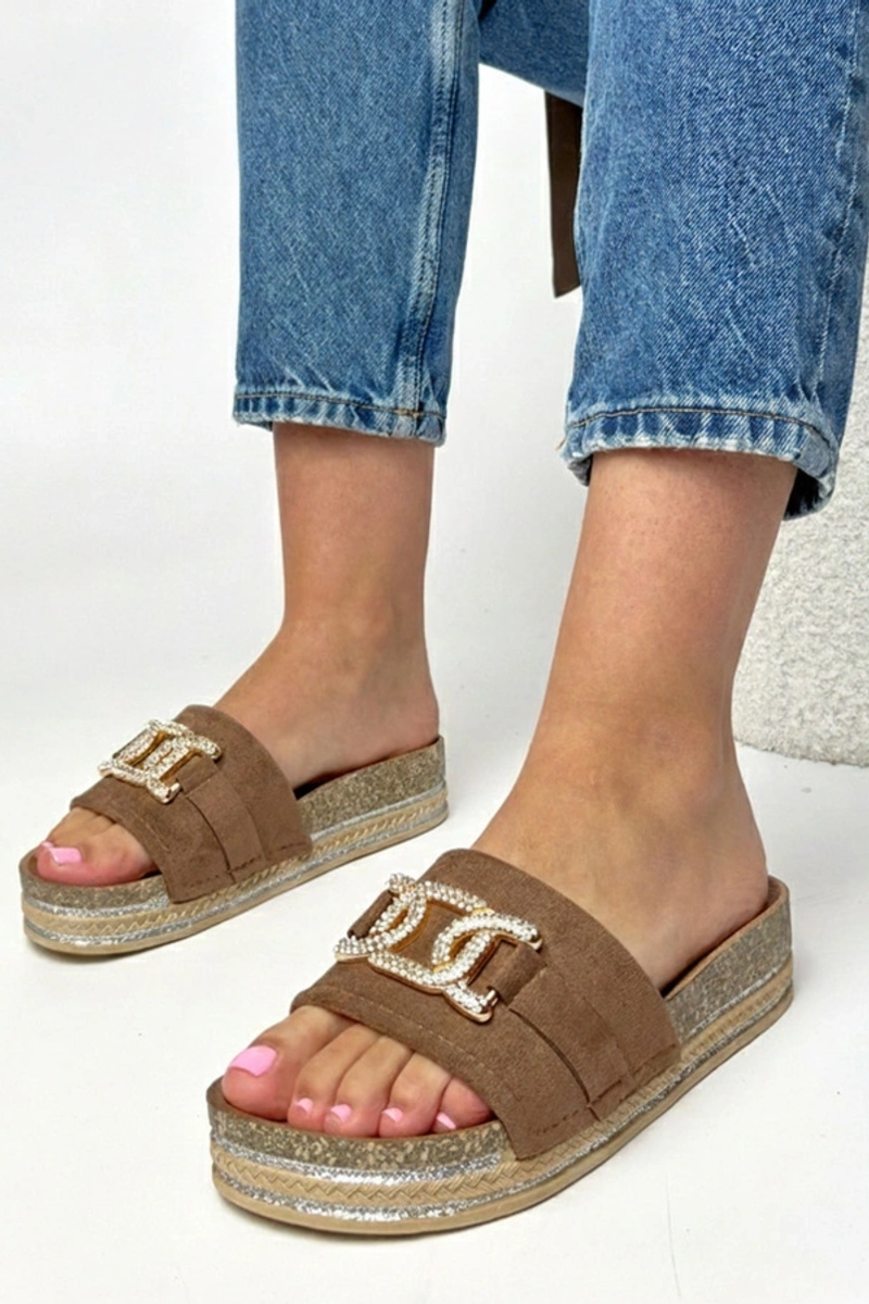 Braune Plattformslipper mit glitzernden Verzierungen Faustine