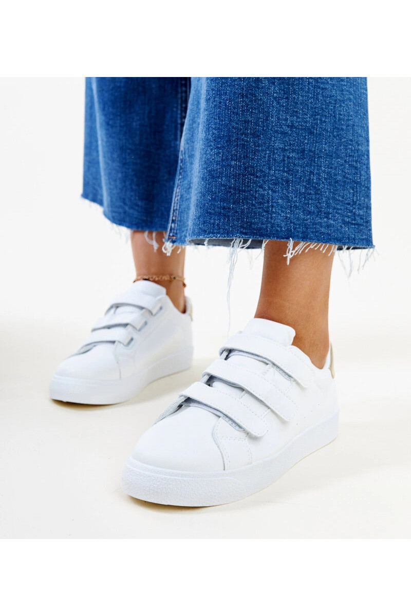 Weiße und goldene Samala-Klett-Sneakers