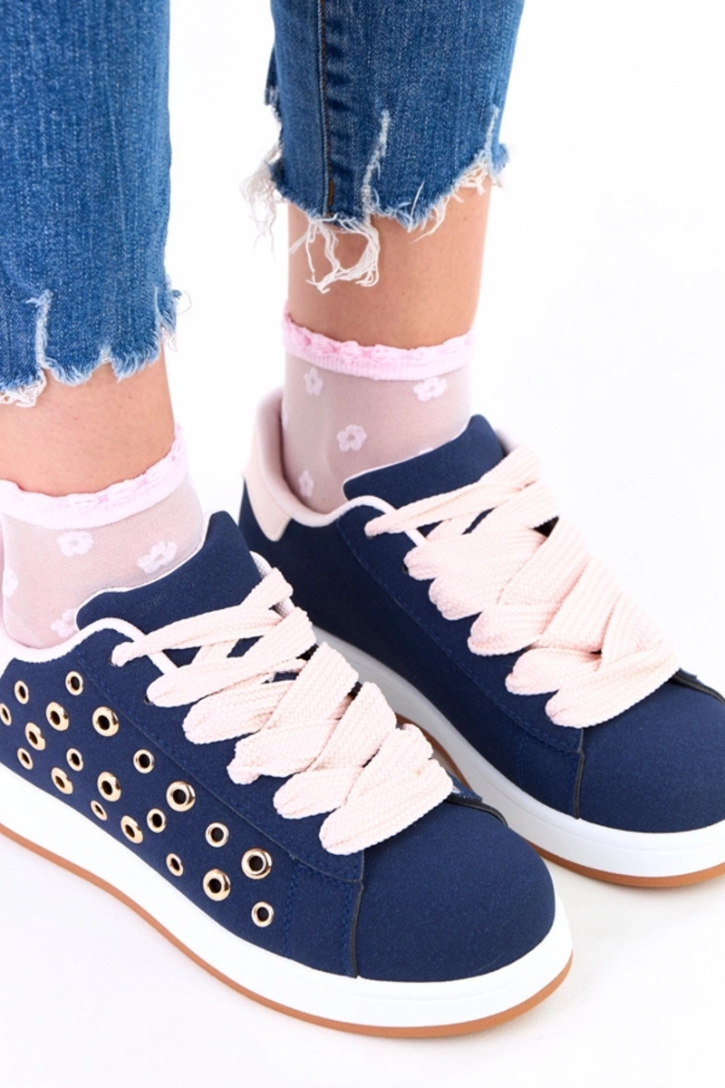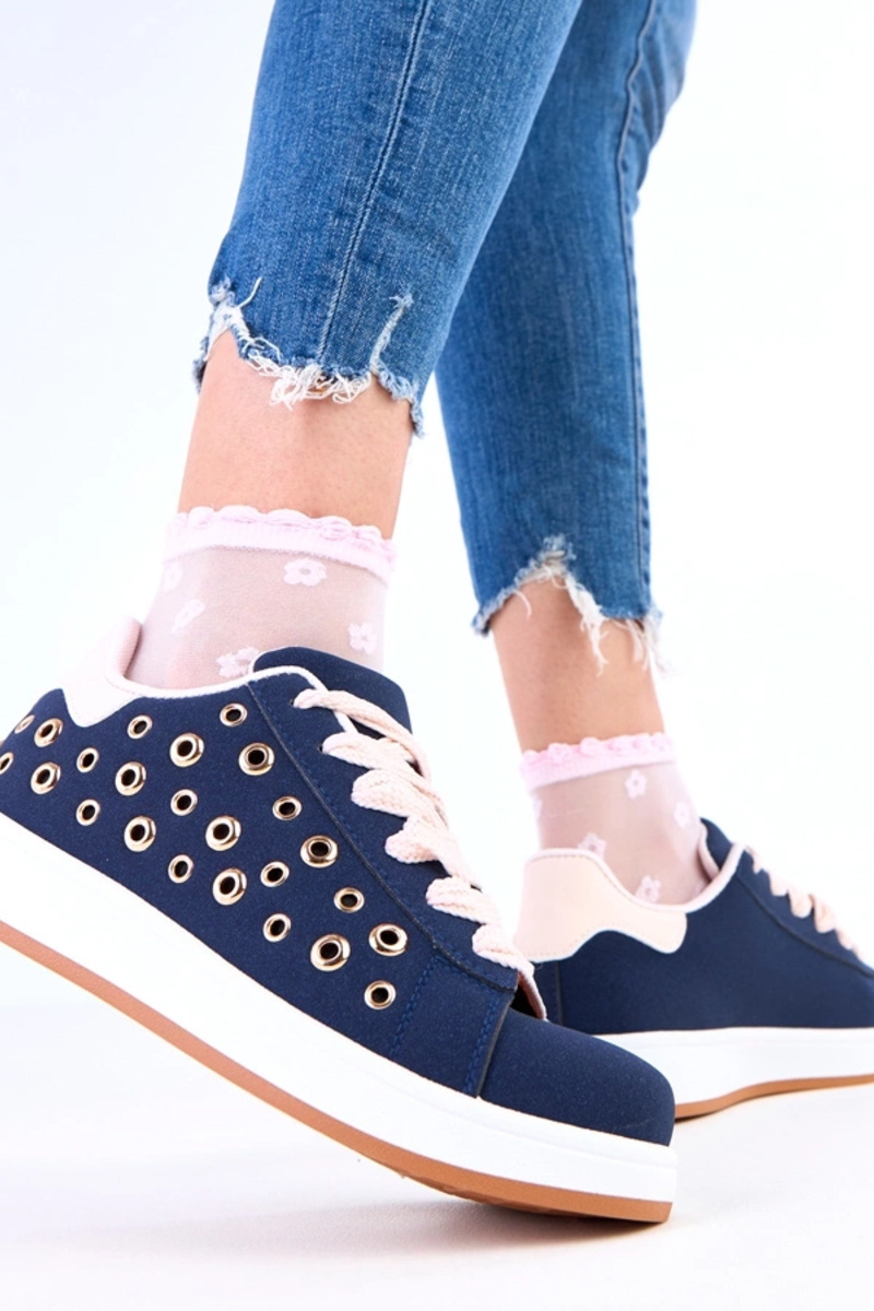 Dunkelblaue Sneakers auf Plattform mit Nieten Adelis