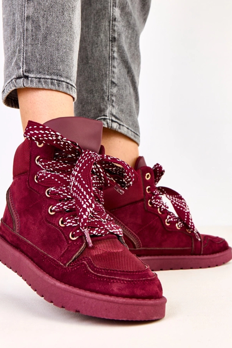 Kirschfarbene hohe Sneakers mit dicken Schnürsenkeln Klevis