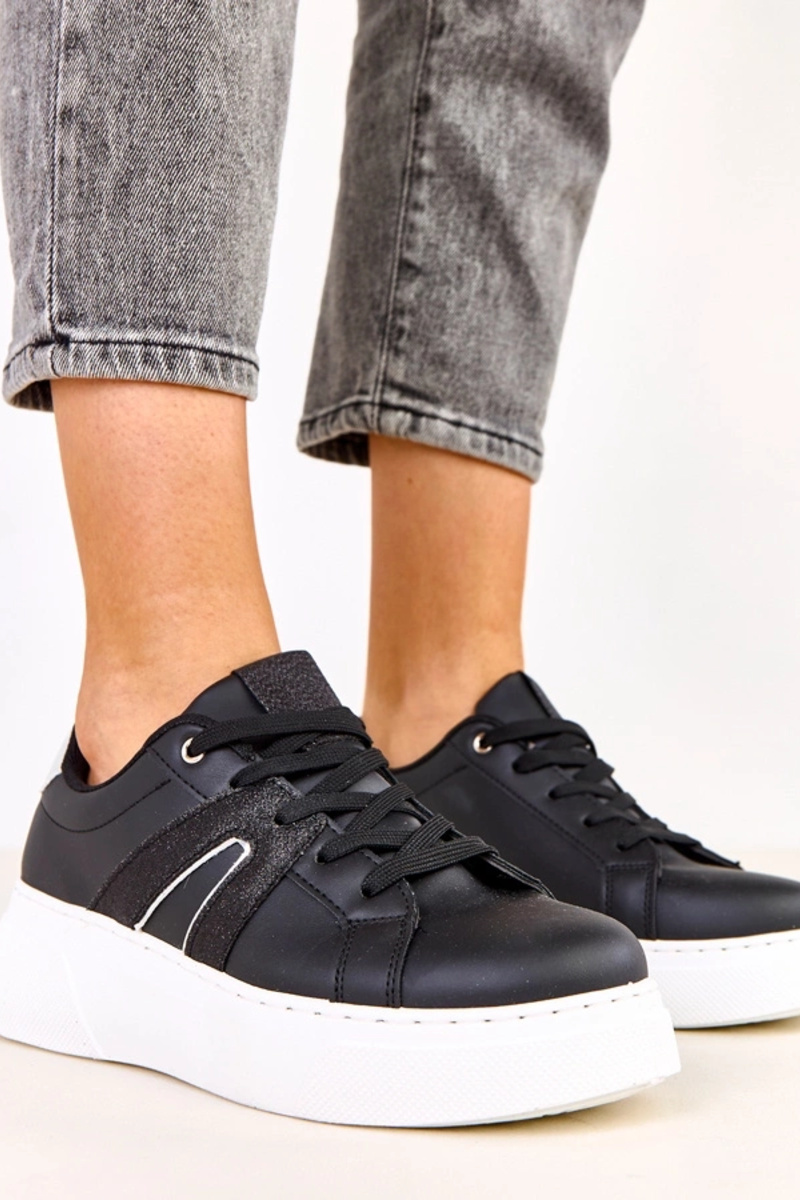 Schwarze Sneakers mit Plattform und glitzerndem Akzent Jeromi